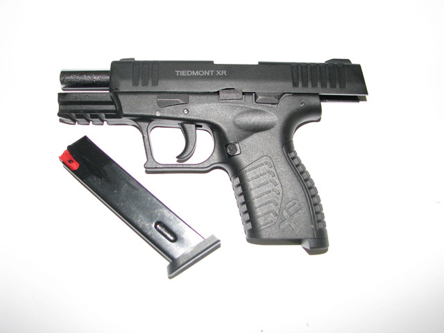 Корпус пістолета виготовлений із збройового полімеру, який забезпечує захист від механічних впливів і можливість застосування навіть у негоду. Надійність використання гарантують виготовлені зі сталі дуло завтовшки 3 мм і 14-зарядний магазин, який витягується через натискання розташованої на ручці кнопки. Посадка пістолета Retay XR у долоню дуже зручна, хват комфортний, завдяки ергономічній ручці. Габарити моделі: довжина 179 мм, висота 136 мм. Вага без боєприпасів-719 грамів.